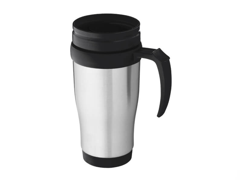 Termosmugg Sanibel är en enkel bilmugg med dubbla väggar och skruvlock. Med inbyggt skjutlock kan du lätt öppna och stänga muggen med tummen.