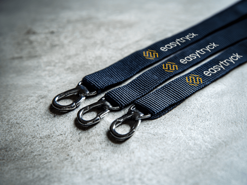 Lägg till säkerhetsspänne, snabbkoppling, mobilsnodd eller plastficka för ID-kort. Se alla nyckelband med tryck i vårt sortiment.