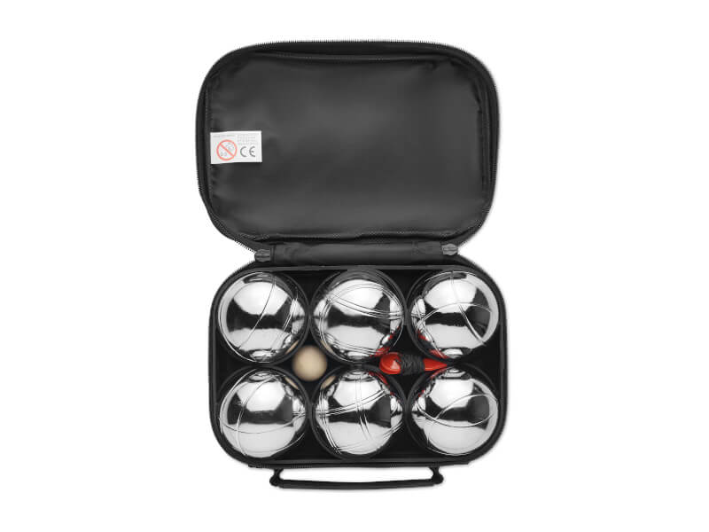 Snygg bärväska som innehåller ett bouleset med 3x2 st klot och lillen i trä samt en avståndsmätare. Varje klot väger 730 gram är 73 mm i diameter. Detta bouleset är en mycket uppskattad sommargåva som med företagets logo tryckt på bärväskan även bär ert varumärke på ett positivt sätt.