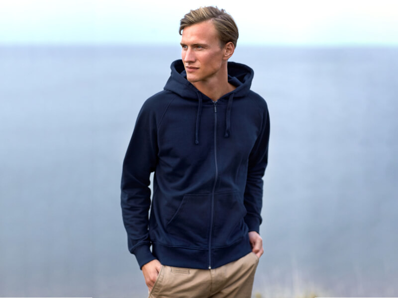 Ekologisk zip hoodie herr – Fairtrade-bomull med eget tryck